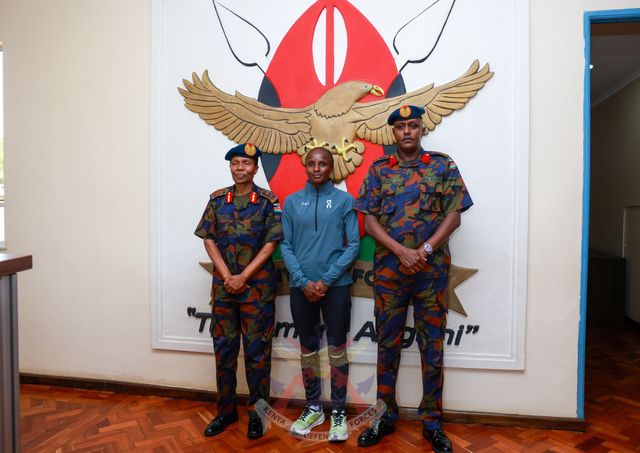 The Commander-in-Chief of the Kenya Airforce Fatuma Ahmed welcomed Boston Marathon defending champion Hellen Obiri to the Kenya Airforce Headquarters in Nairobi.
