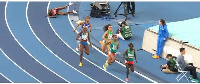 The fall, which Odira carefully evaded, saw the 25-year-old stay out in the back of the pack, and when she tried to get round the back on the final lap, tripped behind the aforementioned Maloney to only clock 2:16.12.