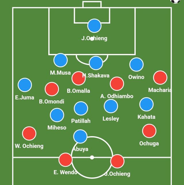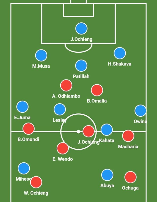 Gor Mahia made several changes, with Peter Lwasa and George Odhiambo being brought on. This left Omalla and Lwasa operating between the lines with Wendo and Alpha Onyango the double pivot to prevent transitions.