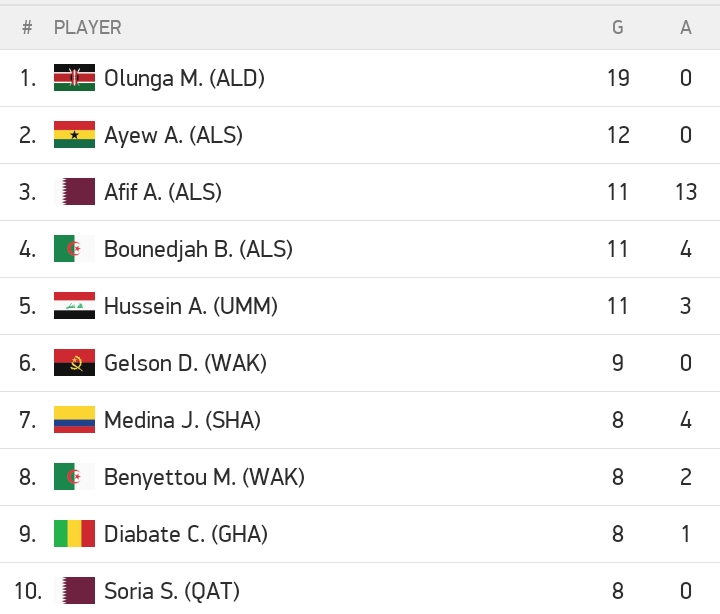 When the postponed continental tournament kicked off on 9 January 2022, Olunga, on 13 strikes for the season, was only two goals clear of Baghdad Boudnejah who was in second place. At that time, Ghanaian international Ayew who was also among the chasing pack in third with nine goals.