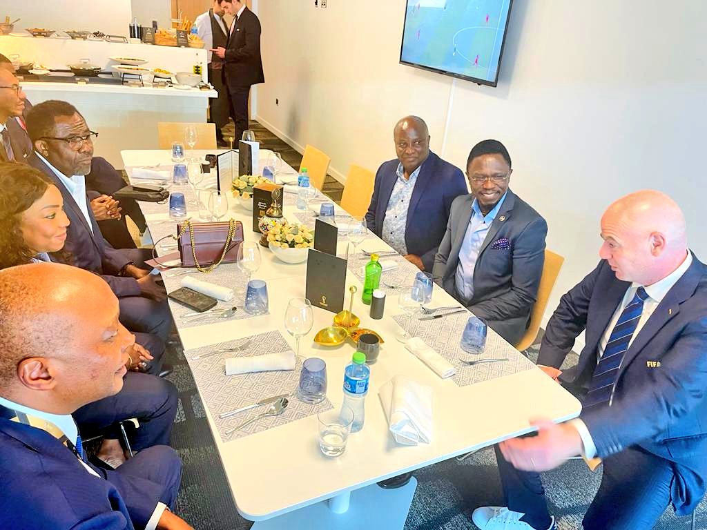 CS @AbabuNamwamba today met @FIFAcom President Gianni Infantino, General Secretary Fatma Samoura and @CAF_Online President Patrice Motsepe in Qatar. They discussed various issues relating to football and Kenya's suspension from international football.#AbabuNaKazi pic.twitter.com/RR2lj9Zequ