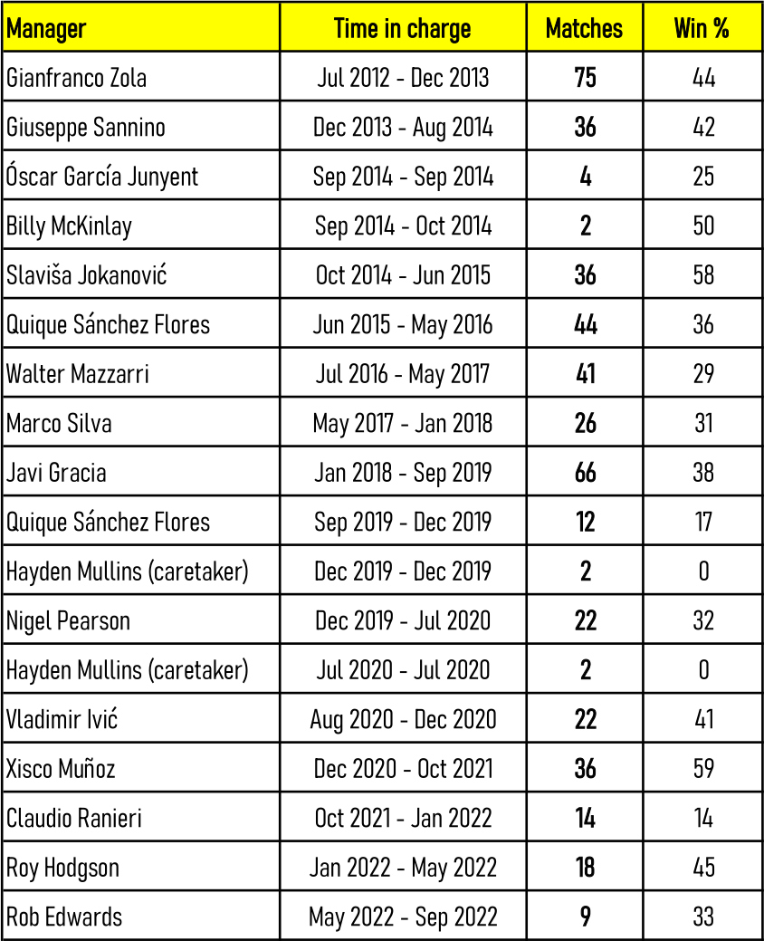 Sixteen coaches hired and fired in a decade - Slaven Bilic is the next for Watford
