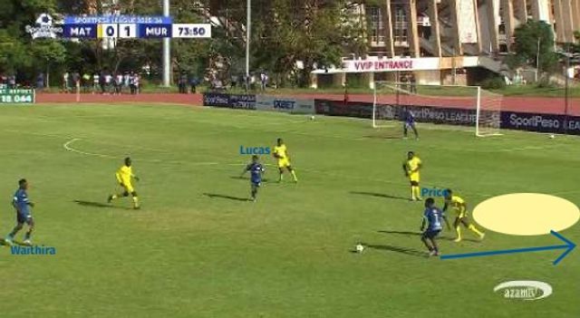 As Mathare’s midfield line held its shape, Murang’a created numerical superiority centrally, drawing pressure before exploiting the spaces between Mathare’s lines.