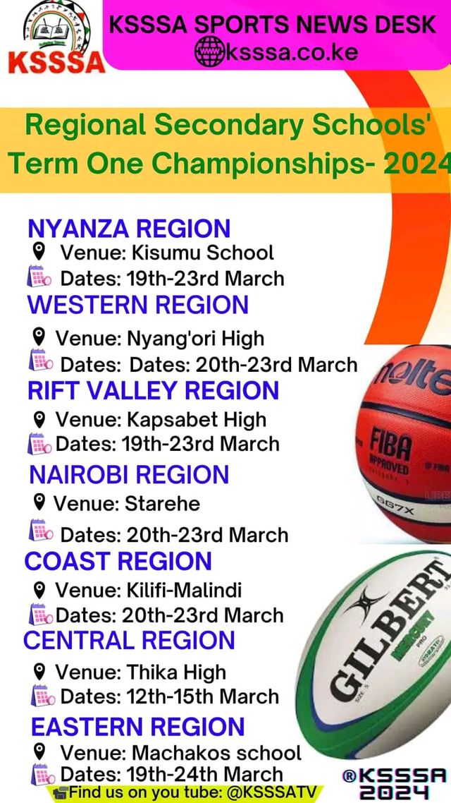 The Nyanza Region 2024 Term One Games Secondary Schools' draws and Pools for Rugby 15's, Handball, Basketball, and Hockey have been unveiled.