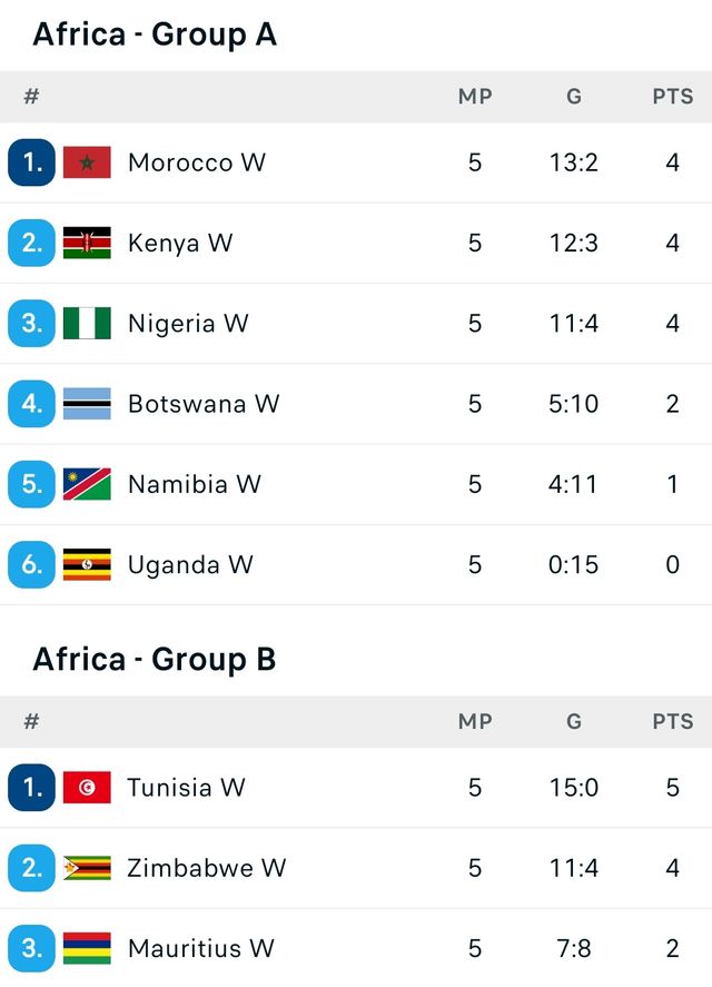 Anything less than that will need mathematical permutations to determine top spot where Kenya, Moroccc and Nigeria all have a chance of clinching.