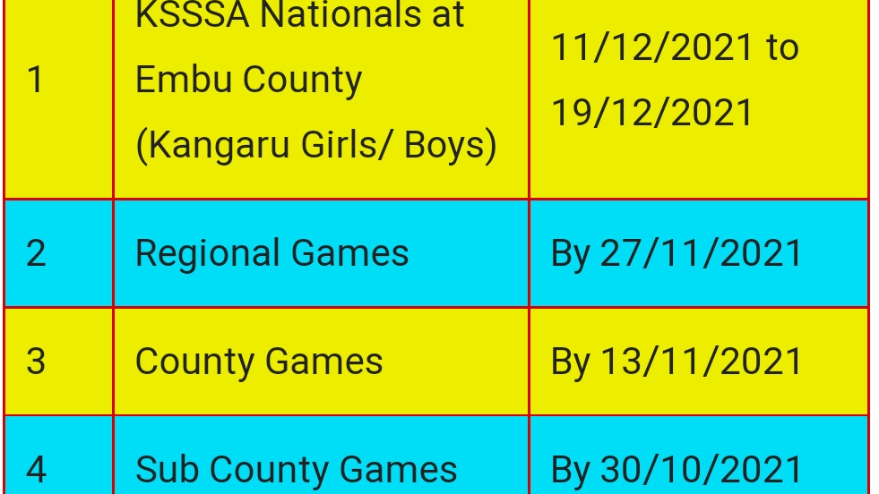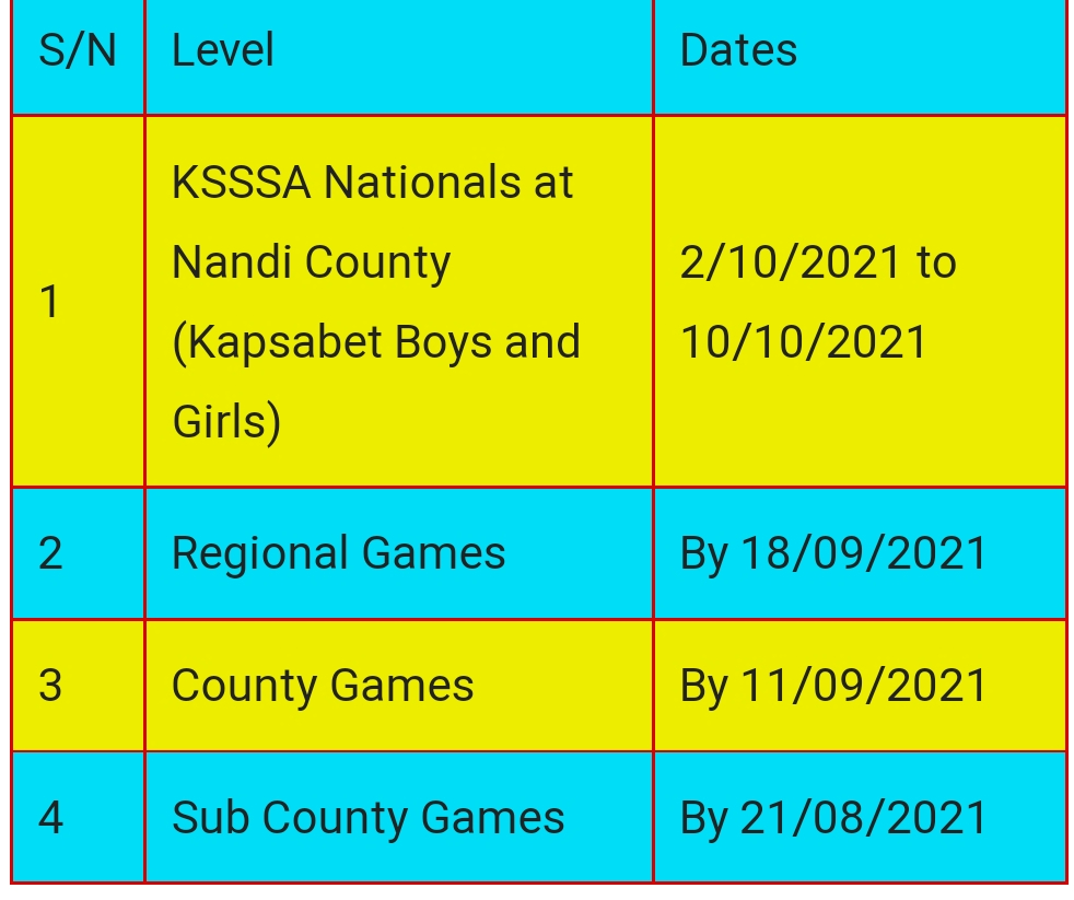 The KSSSA calendar has Sub-County games slated for August 21 with the nationals set for October at Kapsabet.