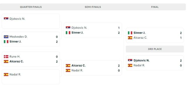 They began in 2021 at the start of the Paris Masters and have since played two finals, five semifinals, and one quarterfinal. They’ve faced each other three times in Grand Slams. In the 2022 Wimbledon fourth round, Sinner triumphed, while Alcaraz won at the US Open the same year. This year's Roland Garros semifinal went to the Spaniard.