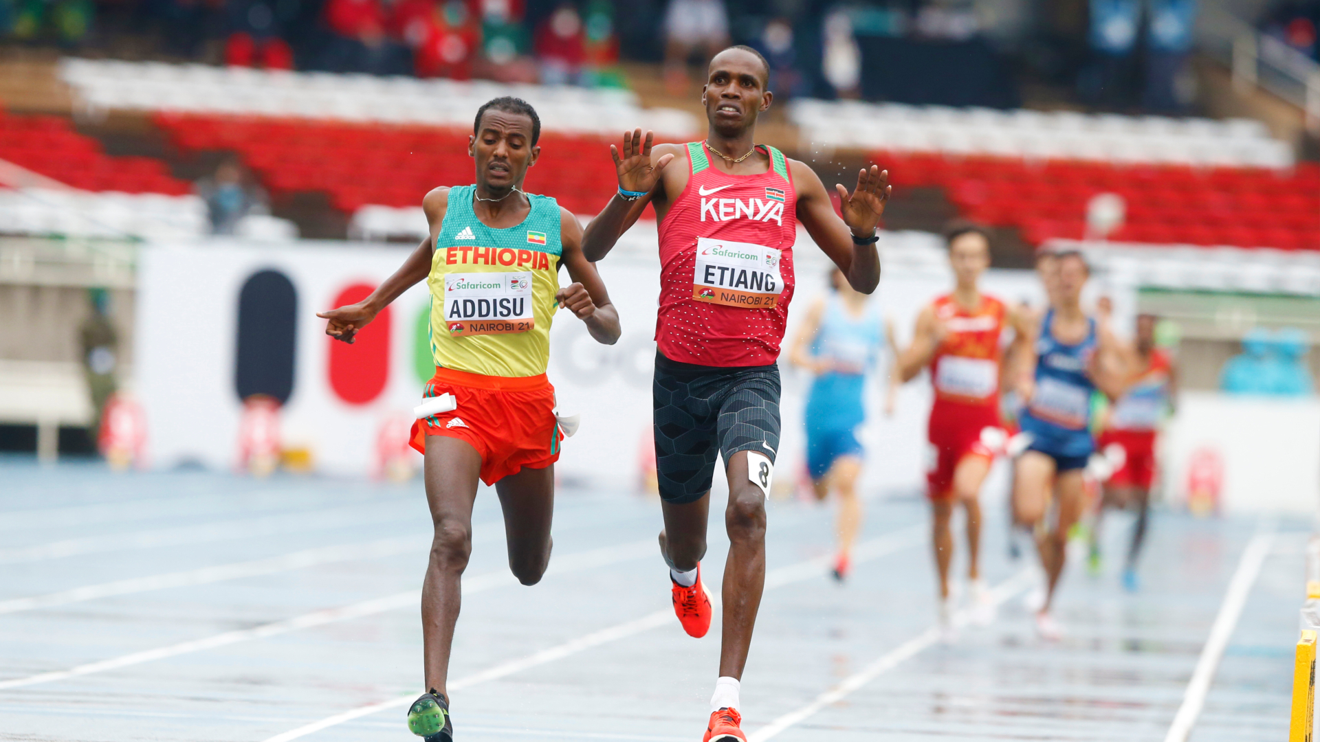 In the second heat, the highly rated Kamar Etiang consoled himself from the missed chance to fly the Kenyan flag in the Olympics after coasting to victory while under pressure from Wegene Addisu of Ethiopia.