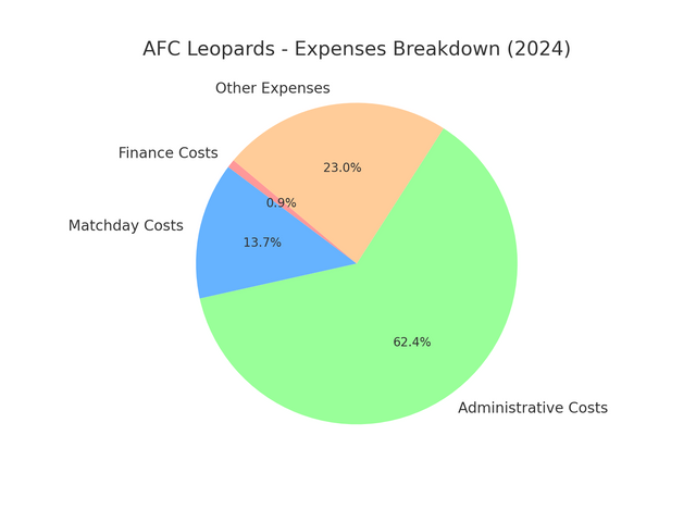 On the expenditure side, administrative costs took the lion’s share at Ksh87,033,308, followed by matchday expenses (Ksh19,165,827) and other operational costs totaling Ksh32,032,153. Finance costs stood at Ksh1,192,153.