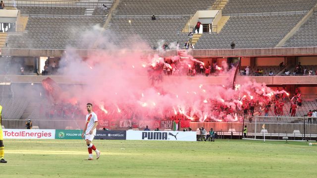 The match was temporarily stopped in the 80th minute when Wydad ultra lighted lasers that filled the stadium with noise and smoke as they pushed their team.