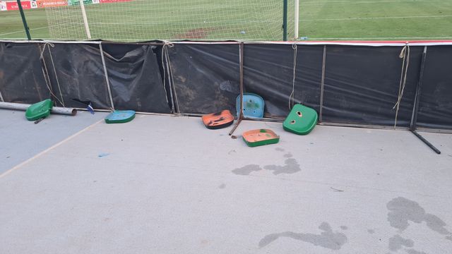 Damage in the stadium included broken seats, window panes and electricity meter box