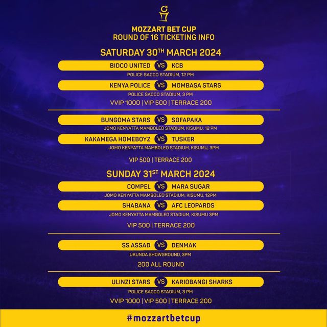 Homeboyz hosts Tusker in a Mozzart Bet Cup round of 16 fixture in Kisumu on Saturday