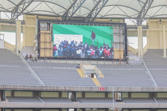 However, the large stadium LED screen is not yet complete as some panels are yet to be fitted, even though it has already been connected and is working, as was tested during the visit.