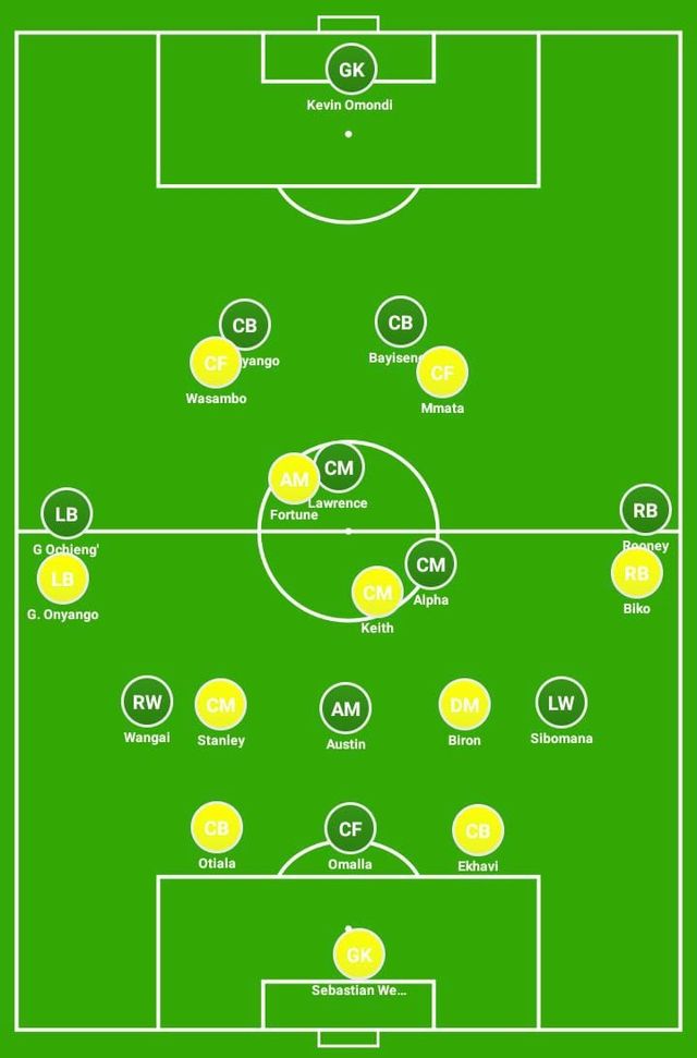 In midfield, Alpha Onyango partnered with Lawrence Juma in what formed a double pivot combination, with Austin Odhiambo tasked with bringing creativity.