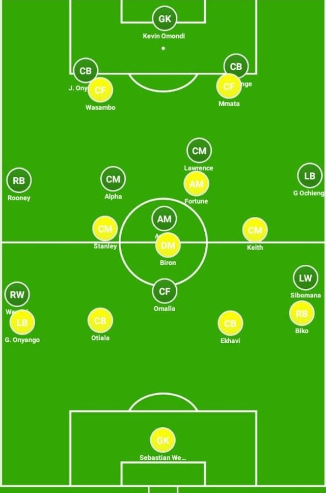 Biron Otieno was the single pivot, joined by Keith Imbali and Kenya under 18 international Stanley Wilson to make the midfield trio.