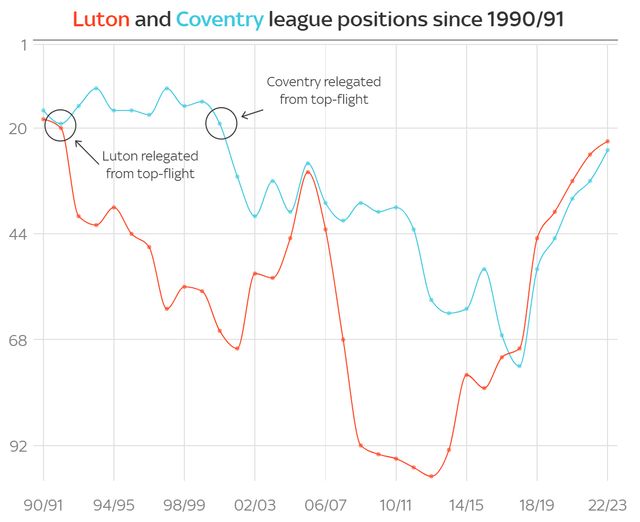 Football's richest game has been billed as "one for the romantics" as Luton and Coventry clash for a place in the Premier League on Saturday after decades in the wilderness. Just five years ago, both clubs were languishing in fourth-tier obscurity. Luton last featured in the top flight in 1992, and their Kenilworth Road stadium, with a capacity of kist over 10,000, set among rows of terraced houses, would be the smallest in the Premier League era if they go up.