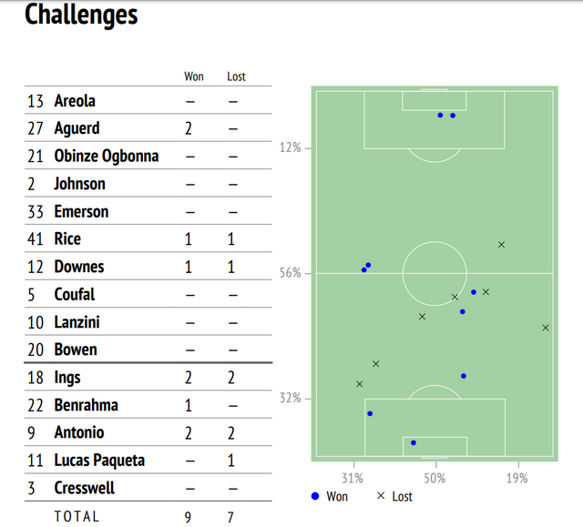 He won two challenges against Danny Ings, two against Michail Antonio, and two against Nayef Aguerd. He then beat Said Benrahma, Declan Rice, and Flynn Downes once each.