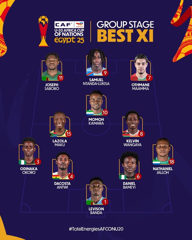 Time to reveal the standout stars! your Group Stage Best XI is here! 🤩#TotalEnergiesAFCONU20 pic.twitter.com/3mCpvscc3T