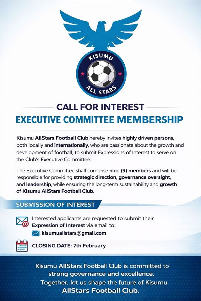 National Super League (NSL) outfit Kisumu All Stars have announced that they are inviting individuals interested in joining the club’s Executive Committee.