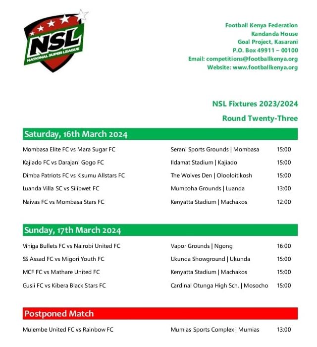 NSL: Naivas in key Mombasa Stars test, Mara Sugar hit the road to face Elite