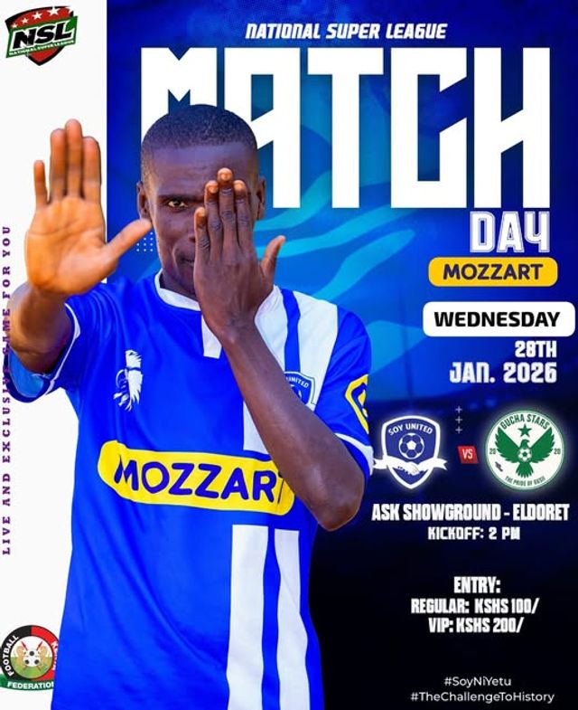 National Super League (NSL) action resumes in earnest on Wednesday, 28 January, with a rescheduled fixture that carries contrasting ambitions at both ends of the table as in-form Soy United host debutants Gucha Stars at the Eldoret Showground.