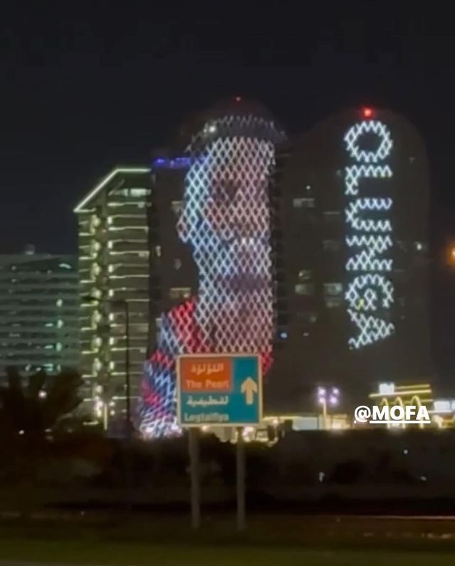 The 30-year-old also had his image and name lit up on one of the buildings in Doha