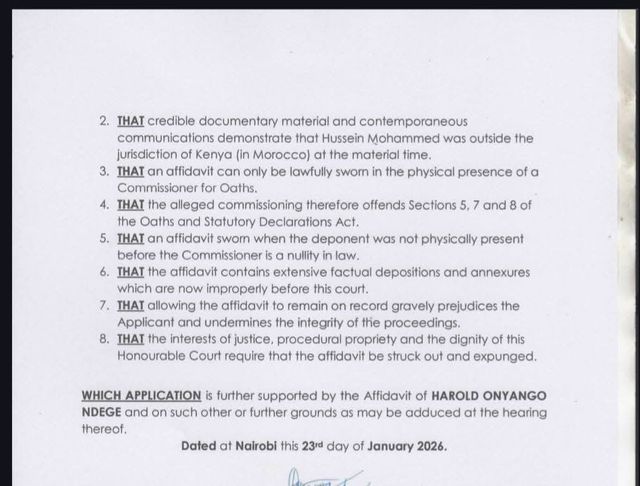 The application questions the procedural validity of FKF’s defense under the Oaths and Statutory Declarations Act, with Ndege’s legal team insisting that an affidavit cannot be commissioned in the absence of the deponent.