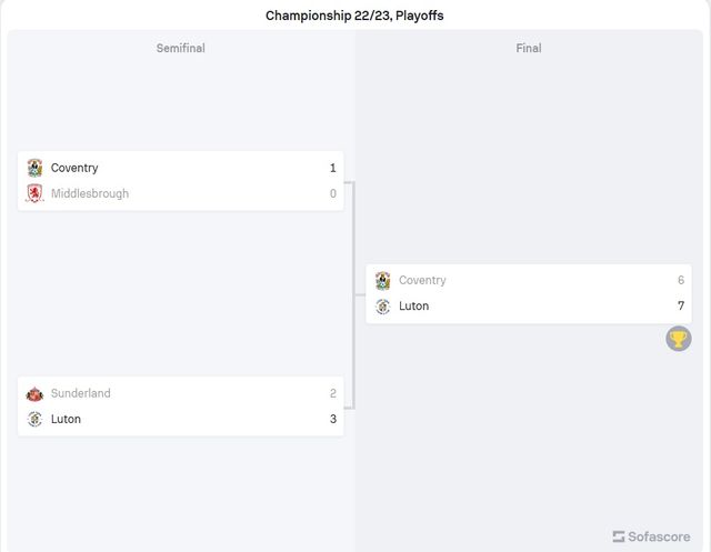 Although they were separated by 10 points in the Championship standings in favor of Luton, the Hatters and Coventry played a draw all three times this season. And every time Luton had the lead. First, they led twice at their own stadium in September's 2-2 draw, then from the first minute in February's away game (1-1), and then in the most important ever duel between these two clubs - the final of the playoffs for placement in the Premier League. And again, Coventry managed to equalize the score to 1-1.