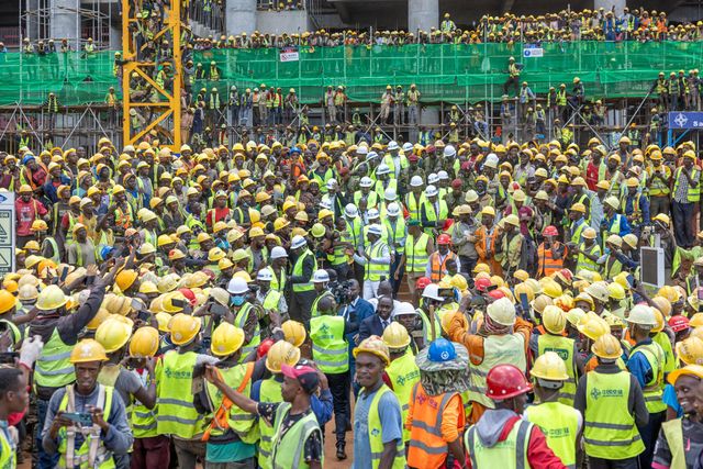 With the scale of work required to have the stadium ready by the deadline being significant, the main contractor, China Road and Bridge Corporation (CRBC), has embarked on a 24-hour operation, with workers divided into day and night shifts.
