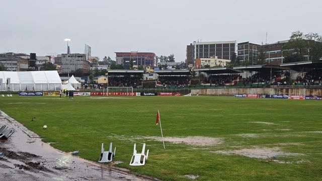 On a day when heavy rains pounded the region, the clash took longer than planned, as both sides were forced off the pitch with a minute of regulation remaining; downpour and gusts of wind rendering the game unplayable.