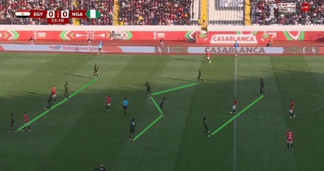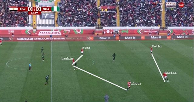 Lashin Mohanad anchored midfield as the single pivot, while Emam Ashour and Ahmed Zizo operated as advanced interiors between Nigeria’s midfield and defensive lines.
