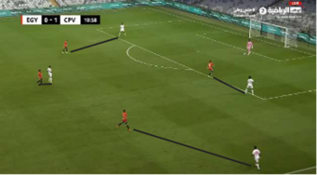 This unpredictability makes Egypt difficult to mark, particularly when supported by high, aggressively positioned fullbacks and inverted wingers who attack the box with vertical conviction.