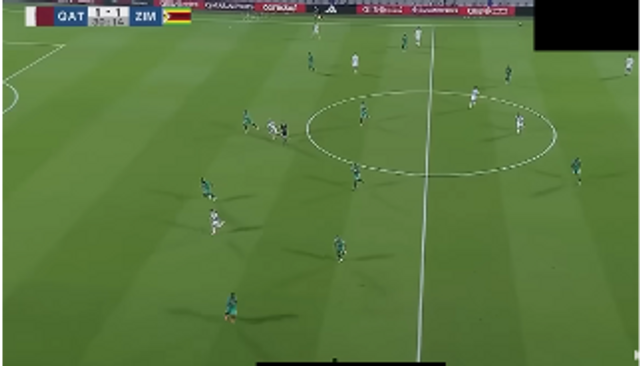 On 17-11-2025, in a friendly, Zimbabwe deployed a high defensive line to catch Qatar players offside, with wingers dropping back to contain pushing fullbacks within a tight 4-4-2 formation
