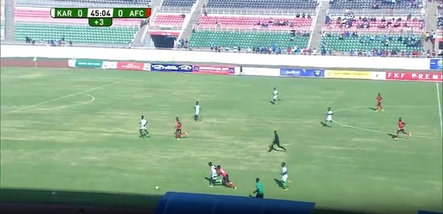 Coach Okidi uses a 3-1-1 build-up structure, but last season had Imbali and Omwando deep; these are players with threat, and one would want them higher up, not in the initial possession phase as below.