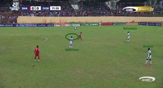 Gor, despite pushing numbers forward, ensured Morrison and the centre-backs remained close enough to counterpress immediately after losses.