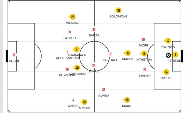 The midfield double pivot consisted of Mohamed Ismail and Mohamed Shehata. Brazilian Jian Alvina and Angolan Chico Banza were tasked with causing havoc on the wing as Seifeddine Jaziri looked to get the goals.