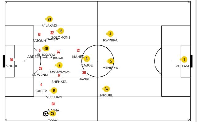 Solomon looked to operate more on the inside, an area his runs had seen him score a goal against Al Masry. This left Vilakazi out wide right.