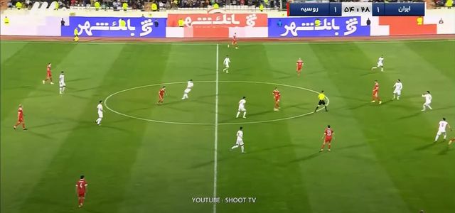 In the pressing front, Amir Galenoi's men are well oiled in this phase. They press in a 1-4-2-3-1 shape where they employ a man to man pressing structure. It alternates to a 1-4-4-2 shape when the second striker jumps to press. They force the opposition center back to one side then go man to man, looking to use the touchline as the extra defender. The Russians found it really hard to beat the Iranian press and conceded 2 big chances because of the pressing situation.