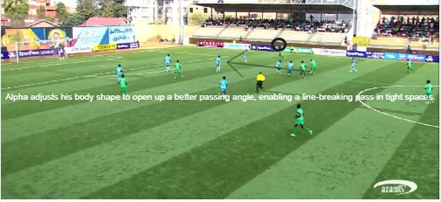 Onyango excels in linking defensive structures to attacking phases, promoting verticality through penetrative passes and spatial exploitation, while serving as a screening presence against opposition advances.