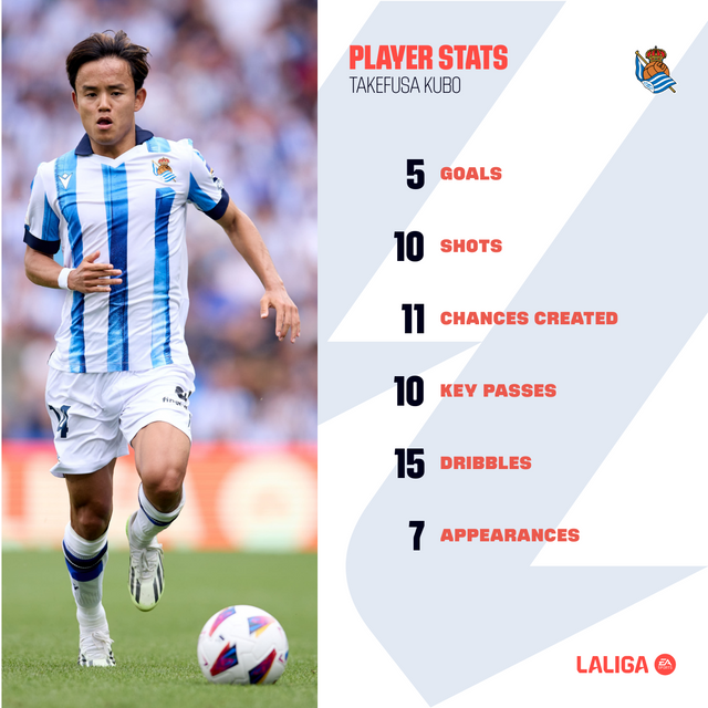 Last season, he was already the Japanese player with the most goals in a single season in LaLiga, before he became the top Japanese scorer in the history of the competition at the beginning of the current campaign. With nine goals and seven assists last season, he set the bar high, but this term he has taken another step forward in showing his quality, getting off to a flying start.