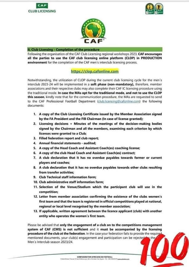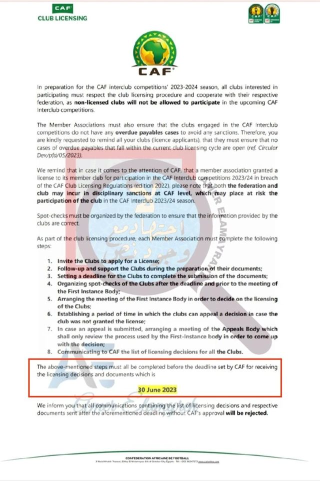 On Wednesday, CAF issued a club licensing checklist that could result in all Kenyan clubs getting locked out of both the CAF Champions League and the CAF Confederation Cup competitions unless they move quickly to comply with the 13-point check list. Clubs have until June 30 to comply.