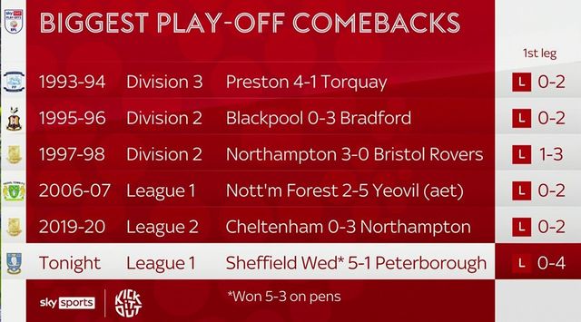 There are comebacks, and there is THIS! Sheffield Wednesday beat Peterborough on penalties to book a place in the EFL League One play-off final at Wembley, and they've done so despite losing the first semi-final leg 4-0! The legendary Hillsborough stadium has seen many things, good and bad, over three centuries, but this was the craziest night.