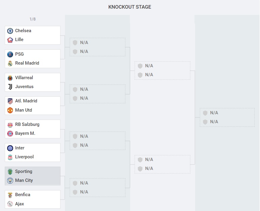23:00: (10.5) Sporting (5.80) Man.City (1.32)