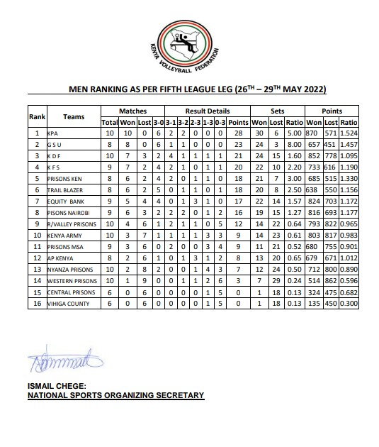KPA chase unblemished streak as KVF men’s league enters sixth leg