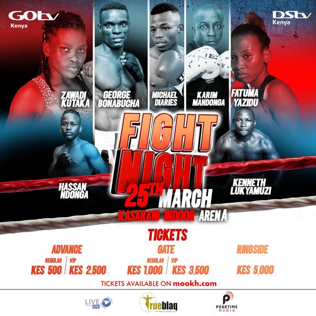 Among the boxers scheduled to fight in the April 1 card include Fatuma Zarika- set for a title fight- and renowned Kenyan boxer Raymond Ochieng.