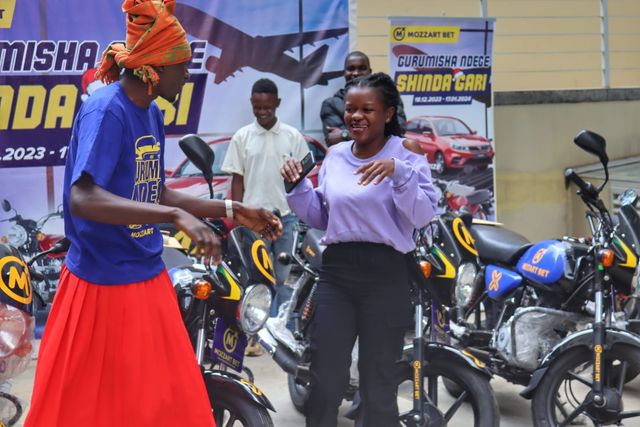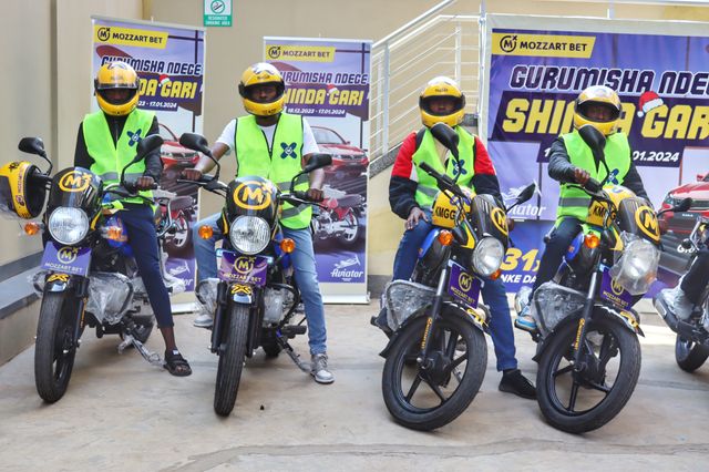 Seven lucky customers on Wednesday 3 January had the pleasure and excitement of riding home with brand new motorbikes, as they were officially presented as the first new winners of the ongoing “Gurumisha Ndege Shinda Gari” innovative Aviator daily promotion courtesy of Mozzart Bet.