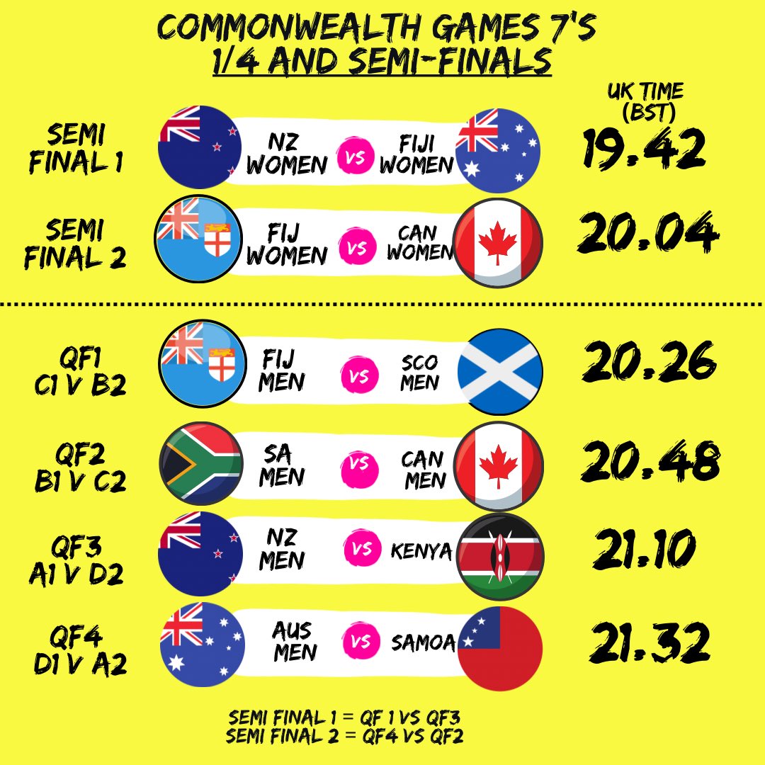 In the other quarter final pairings, Double Olympic champions Fiji, who are still chasing a first ever rugby Commonwealth Gold will take on Scotland who finished second in pool C.