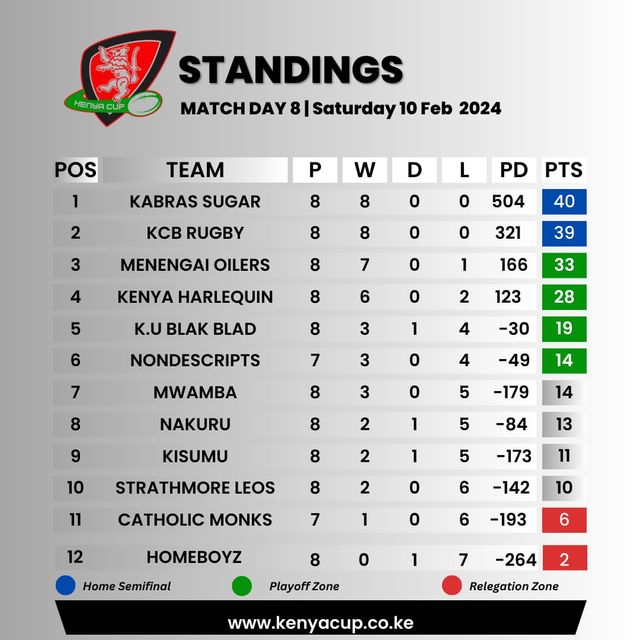 Meanwhile, Menengai Oilers bounced back with a 31-18 win over Nondies at the Nakuru Showground. Tyson Maina, Abutwalib Wesonga, and Jadah Abdon were among the try-scorers for the Oilers, securing their home match winning streak.