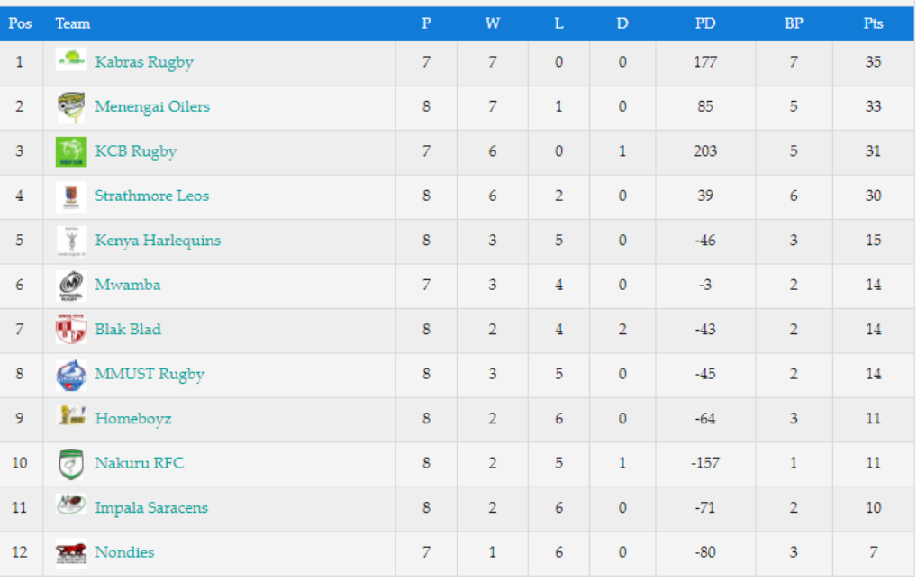 In the clash staged at the ASK Grounds in Nakuru, Kabras managed to reclaim top spot as they ran in four tries to hand Oilers their first loss of the season as they secured a bonus point to go with the victory that sent them back to the top of the table on 35 points while Oilers on the other hand dropped to second.