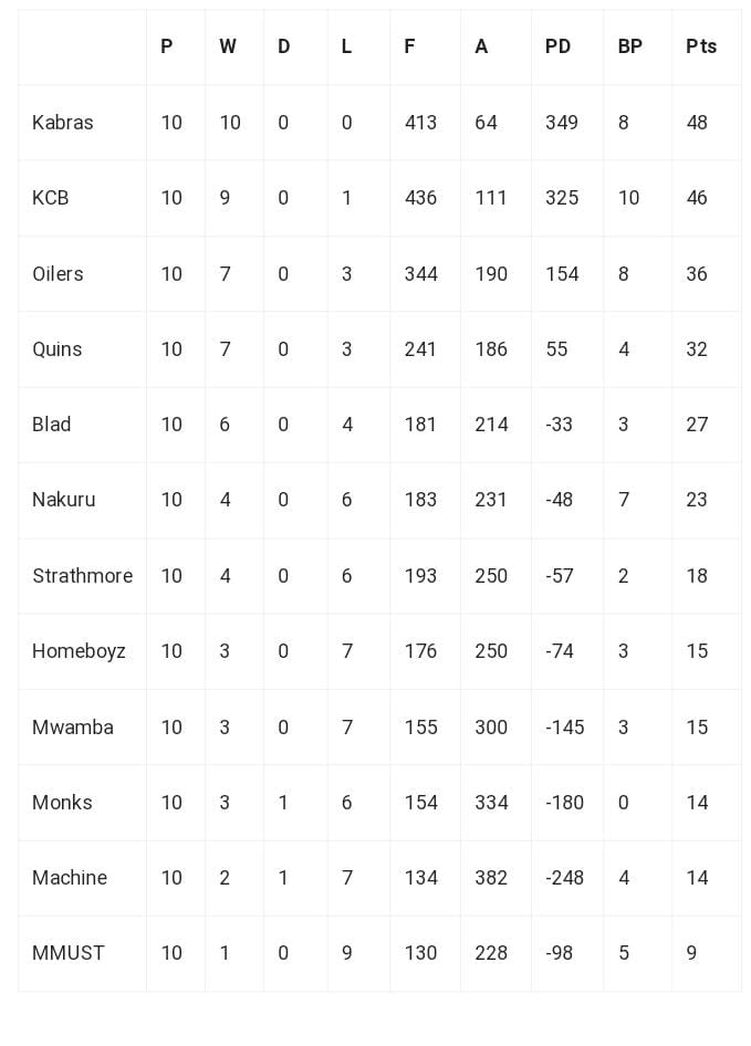 This is after the sugar millers handed themselves a massive advantage in their quest for a third league title after recording an impressive 23-29 victory over perennial rivals KCB to leapfrog the Bankers at the top of the table as they remained the only unbeaten side in the division with one match to go in the regular season.